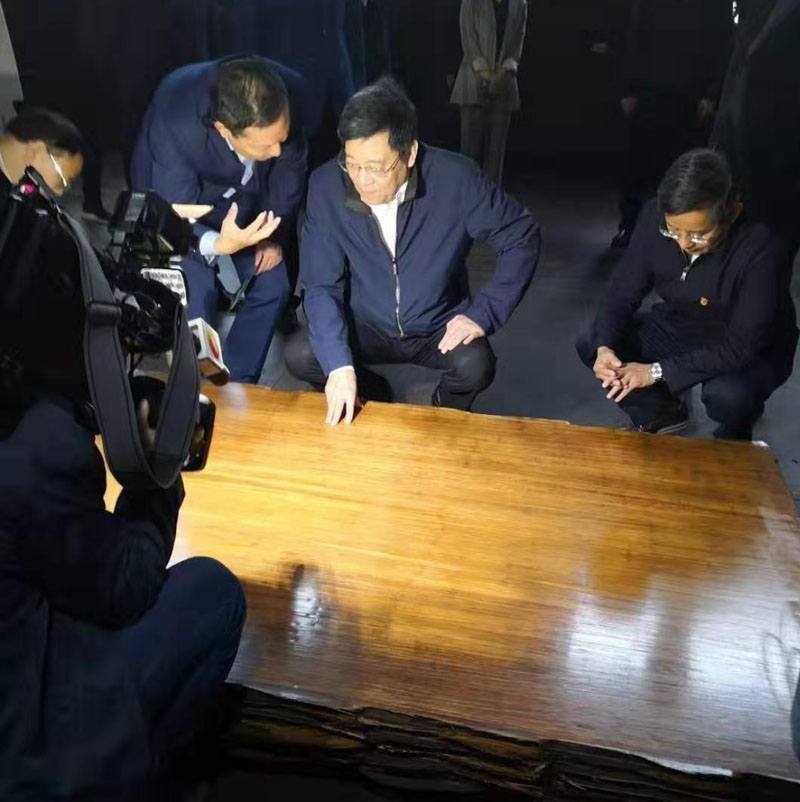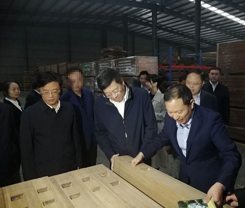 2019年10月15日,湖南省省委書記、省人大常委會(huì)主任杜家毫一行蒞臨我司考察調(diào)研,這也是他任職湖南省后第二次造訪桃花江竹材。湖南省委常委、湖南省委秘書長(zhǎng)張劍飛,益陽(yáng)市市委書記瞿海、益陽(yáng)市市長(zhǎng)張值恒等相關(guān)部門領(lǐng)導(dǎo)陪同調(diào)研。在公司董事長(zhǎng)薛志成的陪同下,杜書記一行深入我司戶外竹材生產(chǎn)車間一線調(diào)研,對(duì)我司生產(chǎn)經(jīng)營(yíng)、人才培養(yǎng)、科技創(chuàng)新和新產(chǎn)品開發(fā)等方面進(jìn)行了調(diào)研。杜書記仔細(xì)端詳公司產(chǎn)品,詳細(xì)詢問(wèn)產(chǎn)品的生產(chǎn)流程,應(yīng)用領(lǐng)域和銷售情況,他對(duì)公司擁有戶外防腐竹材、竹地板、竹墻板等10余項(xiàng)國(guó)家授權(quán)發(fā)明專利的研發(fā)能力表示贊賞,他說(shuō) :"我們需要的就是像桃花江竹材這樣的企業(yè) ,有較強(qiáng)的自主研發(fā)能力,生產(chǎn)的戶外竹材產(chǎn)品,環(huán)保又可持續(xù)發(fā)展,市場(chǎng)前景巨大,發(fā)展竹產(chǎn)業(yè)又能帶動(dòng)周邊竹農(nóng)致富,政府表示大力支持,前不久出臺(tái)的那個(gè)湖南農(nóng)業(yè)優(yōu)勢(shì)特色千億產(chǎn)業(yè)行動(dòng)方案就部署了對(duì)楠竹產(chǎn)業(yè)的發(fā)展規(guī)劃,希望桃花江竹材作為竹產(chǎn)業(yè)的龍頭企業(yè),能充分發(fā)揮引領(lǐng)帶頭作用,提升竹產(chǎn)業(yè)的科技創(chuàng)新能力,為把竹產(chǎn)業(yè)做大做強(qiáng)貢獻(xiàn)更大的力量。"
