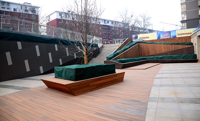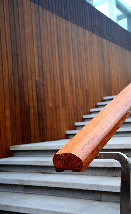 北京融達(dá)國(guó)際廣場(chǎng)位于北京西三環(huán)豐益橋南側(cè),是北京麗澤金融商務(wù)區(qū)核心區(qū)域。融達(dá)國(guó)際項(xiàng)目的廣場(chǎng)設(shè)計(jì)中大量地使用了桃花江竹材科技的戶外防腐材料:戶外地板、墻板和重竹格柵。 越來(lái)越多的高端商業(yè)地產(chǎn)項(xiàng)目運(yùn)用竹材作為建筑裝飾材料,不僅僅是因?yàn)橹癫拿烙^、色澤自然、竹香怡人、質(zhì)感高雅;更是因?yàn)橹癫奶赜械奈幕泻推淇沙掷m(xù)再生的高環(huán)保特性,更符合現(xiàn)代都市人崇尚文化、向往自然的人居理念。 桃花江竹材,讓地球家園更美好!