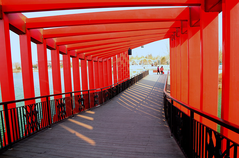 北京新印象臺(tái)湖森林公園位于北京市通州區(qū)臺(tái)湖鎮(zhèn),總面積1281畝,投資1.4億元。該公園集印象景區(qū)、體育運(yùn)動(dòng)區(qū)、兒童活動(dòng)區(qū)、高檔休閑區(qū)、野營(yíng)度假區(qū)、村莊服務(wù)區(qū)六個(gè)功能區(qū)于一體,是京郊新建配套最完善、生態(tài)環(huán)境最佳的公園。 新印象臺(tái)湖公園核心景觀區(qū)域大面積使用了湖南桃花江竹材科技的戶外高炭防腐地板,配合該項(xiàng)目景觀未來周邊的林地發(fā)展并結(jié)合濕地地貌,全方位的展示了該項(xiàng)目在人文、生態(tài)、環(huán)保方面理念的完美融合,獨(dú)具特色,是桃花江竹材科技的又一經(jīng)典案例。