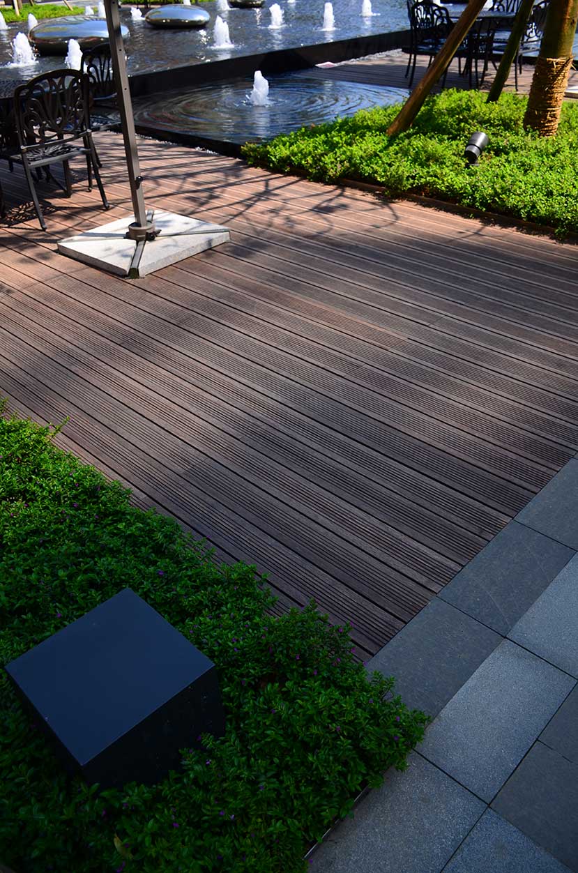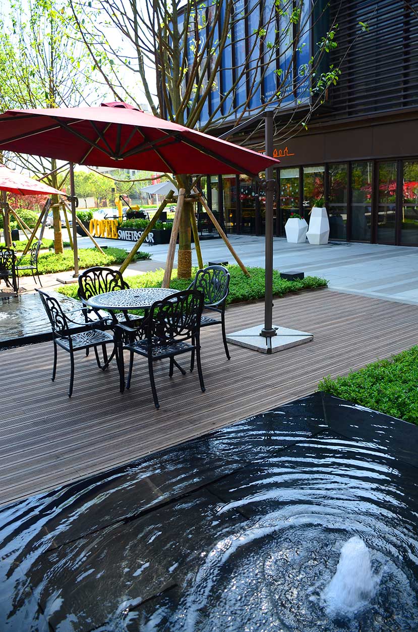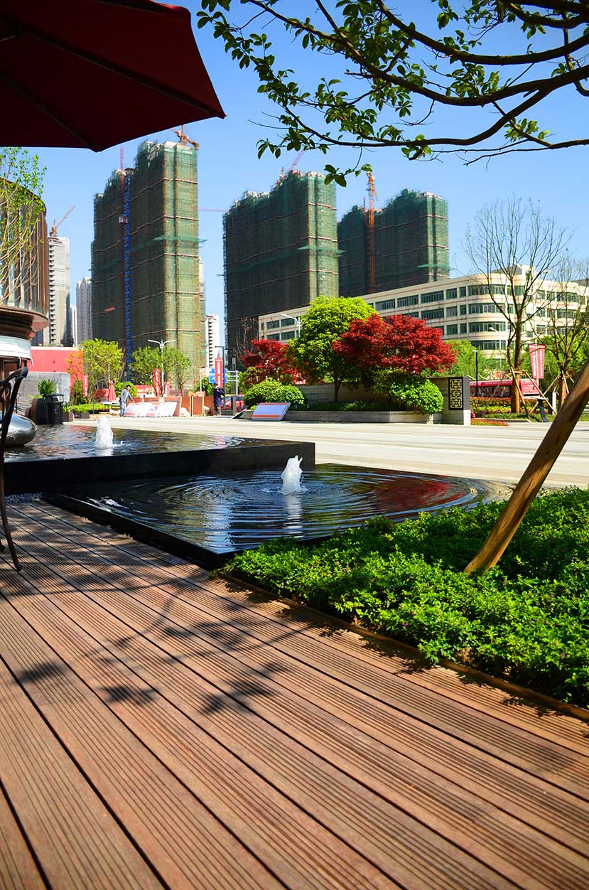 南昌萬科金域國際位于南昌經開區(qū)雙港西大街,是萬科地產布局南昌的重點項目,該項目是南昌首屈一指的低密、人文、宜居的學院派主題風格社區(qū)。 南昌萬科金域國際項目的社區(qū)風情廣場使用桃花江戶外防腐竹地板結合原生石材作為地面鋪裝,強化人與環(huán)境的自然統(tǒng)一,靈動的流水景觀與學院派風格的建筑完美結合,漫步其中仿佛置身于歐洲某個寧靜的古老小鎮(zhèn)。