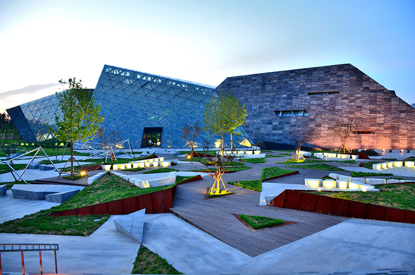 唐山熱帶植物館為2016年唐山世界園藝博覽會主展館,建筑面積1.3萬平方米,其中室內(nèi)展出面積是7000平方米,地上3層,高23m,總投資4.5億元。場館運用桃花江戶外防腐竹地板,搭配清水混凝土與腐蝕鋼板等工業(yè)風(fēng)材質(zhì),通過簡潔、犀利的幾何線條切割手法有力的詮釋出唐山以煤為根,以鐵為命,堅韌的意志與豐富的地貌的設(shè)計理念,整個建筑極具視覺沖擊力。