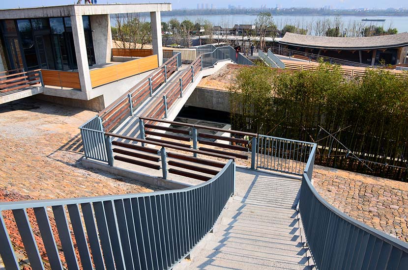 富陽(yáng)公望美術(shù)館也叫富春山館, 位于杭州市富陽(yáng)區(qū), 是集博物館、美術(shù)館、檔案館 三館合一的建筑綜合體, 由著名設(shè)計(jì)大師 王澍設(shè)計(jì)。 大師以蘇東坡《題西林壁》里的描繪 為靈感來(lái)源, 按照中國(guó)傳統(tǒng)的山水序列, 建筑整體構(gòu)筑中呈現(xiàn)近山、 遠(yuǎn)山瀠洄呼應(yīng)的構(gòu)筑法則和三遠(yuǎn)視角, 與咫尺之遙的富春山水互相輝映。 美術(shù)館設(shè)計(jì)成內(nèi)山和外山, 站在屋頂會(huì)看到一整片美術(shù)館都是外山, 而頂上兩件小居, 正是設(shè)計(jì)師心中的富春山居。 美術(shù)館大量運(yùn)用桃花江戶外防腐竹材 和室內(nèi)裝飾竹材, 是典型的竹元素主題建筑, 在文化場(chǎng)所的建設(shè)中 竹材 是設(shè)計(jì)師表達(dá)設(shè)計(jì)文化內(nèi)涵的有力工具。