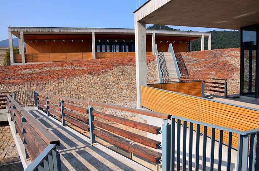 富陽(yáng)公望美術(shù)館也叫“富春山館”,位于杭州市富陽(yáng)區(qū),是集博物館、美術(shù)館、檔案館“三館合一”的建筑綜合體,由著名設(shè)計(jì)大師王澍設(shè)計(jì)。大師以蘇東坡《題西林壁》里的描繪為靈感來(lái)源,按照中國(guó)傳統(tǒng)的山水序列,建筑整體構(gòu)筑中呈現(xiàn)近山、遠(yuǎn)山瀠洄呼應(yīng)的構(gòu)筑法則和“三遠(yuǎn)”視角,與咫尺之遙的富春山水互相輝映。美術(shù)館設(shè)計(jì)成內(nèi)山和外山,站在屋頂會(huì)看到一整片美術(shù)館都是外山,而頂上兩件小居,正是設(shè)計(jì)師心中的富春山居。