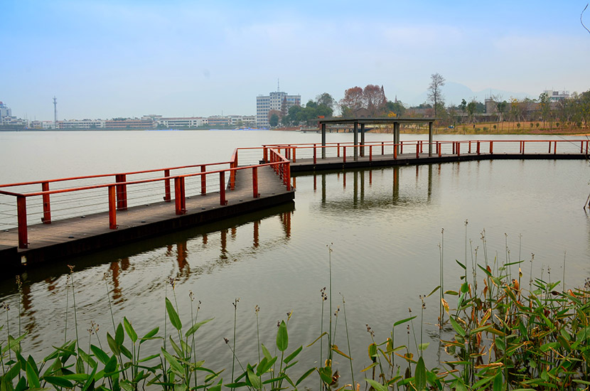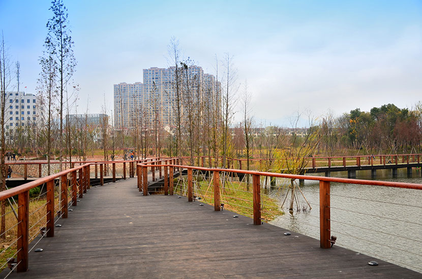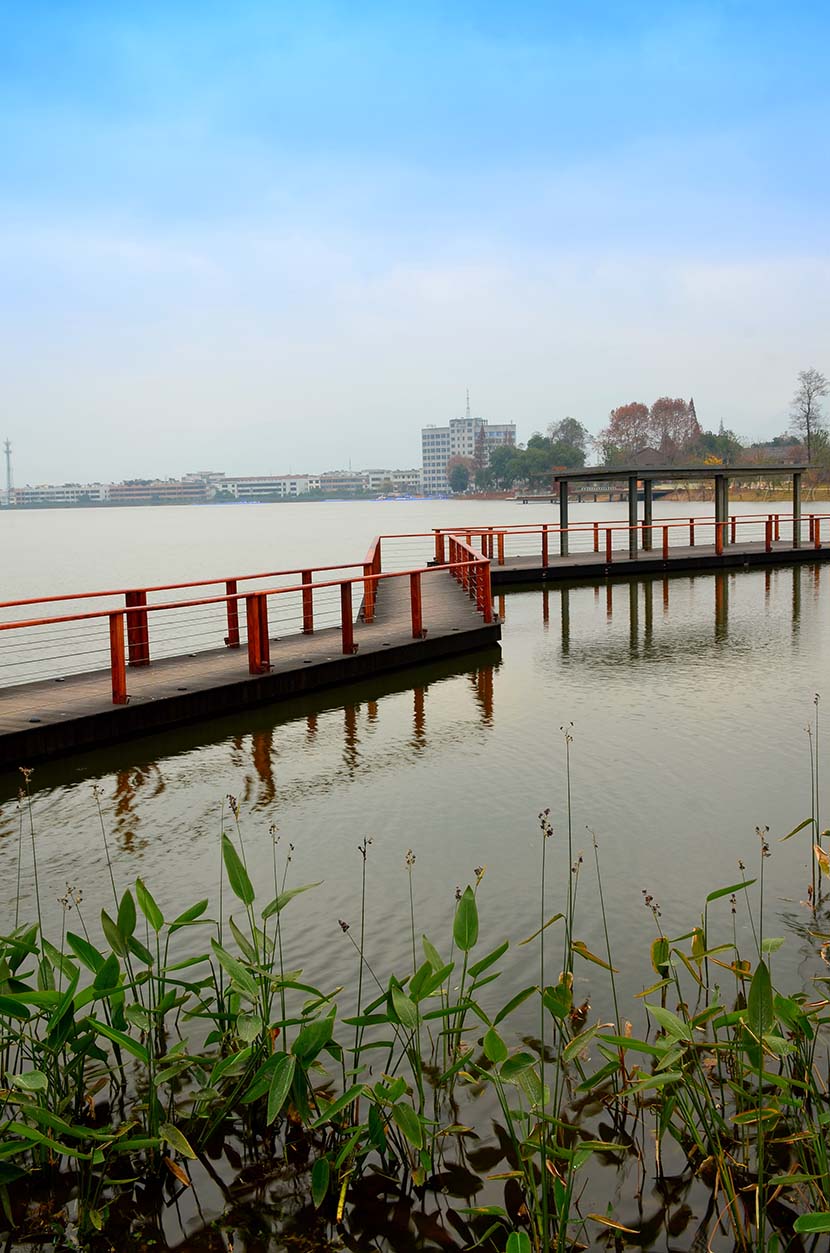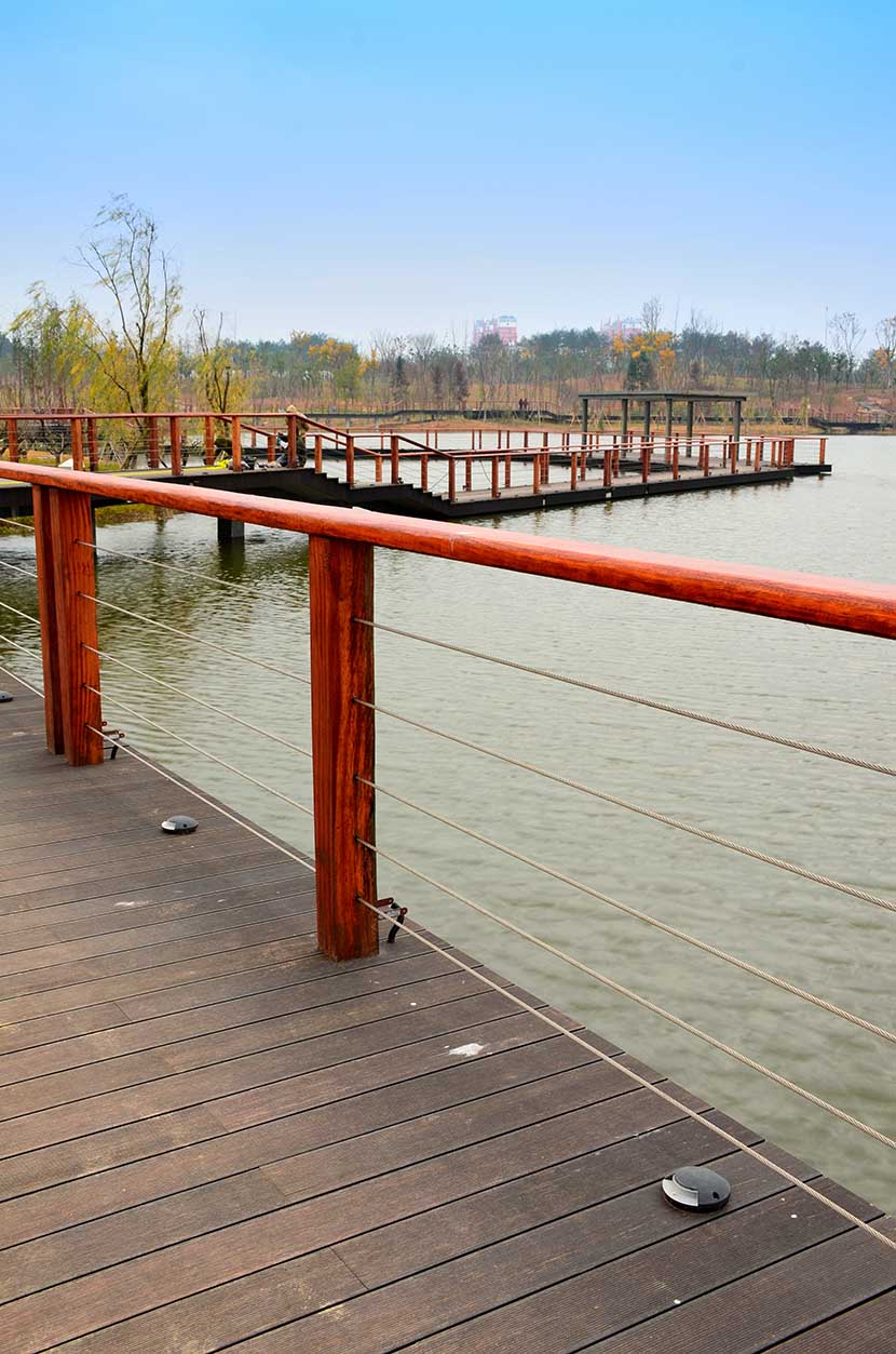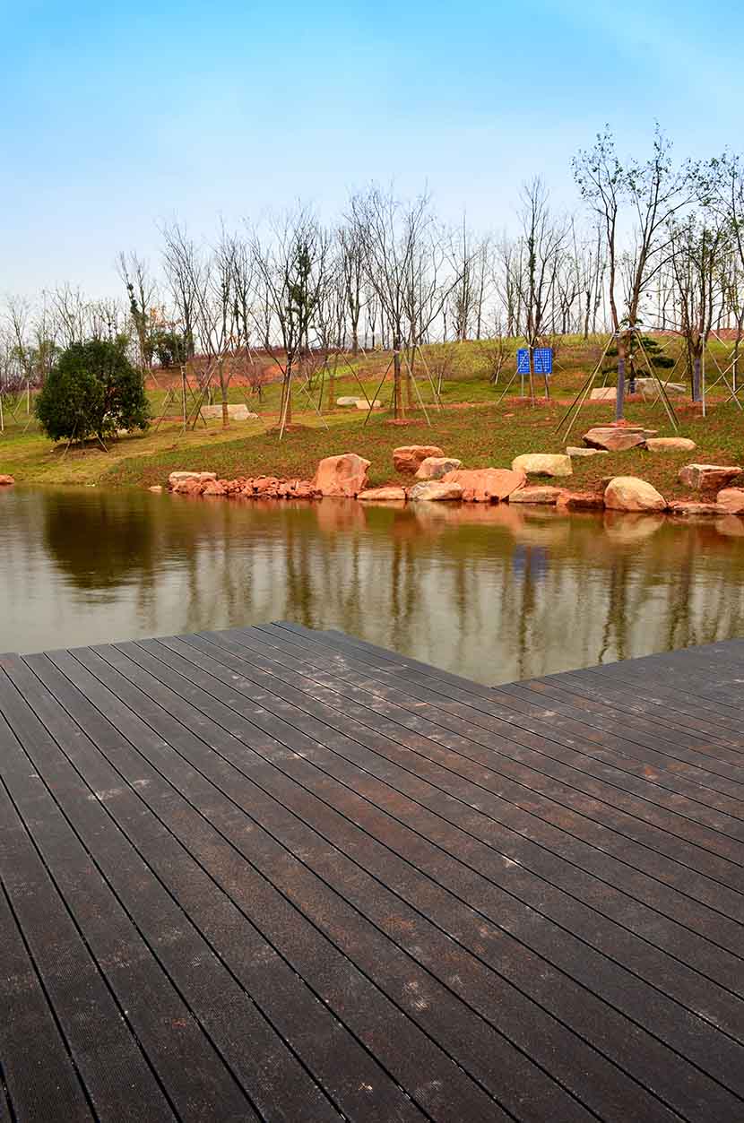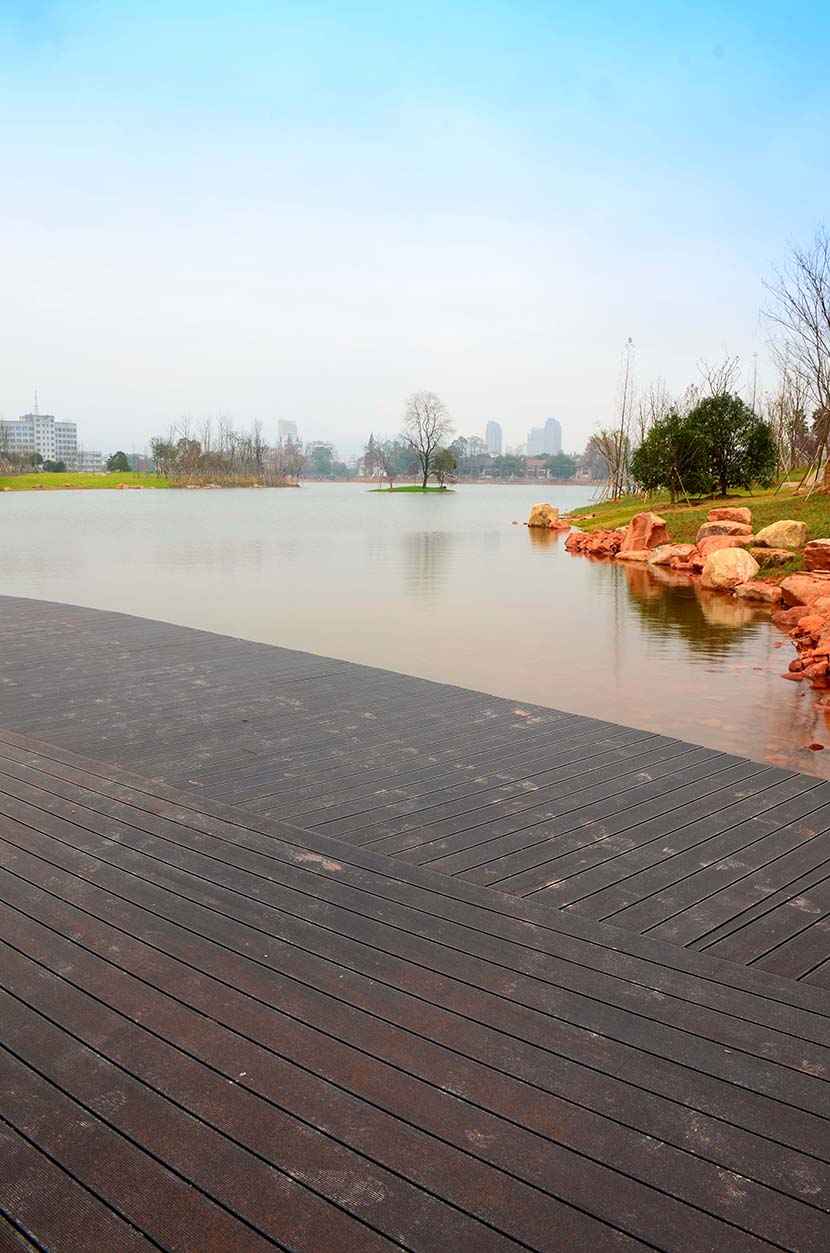 金獅湖公園位于浙江金華市北部的浦江縣,面積1265畝(水域面積368畝),總投資48億元。項目規(guī)劃為一環(huán)(金獅湖慢行游憩環(huán))、三片(人文體驗景觀風貌片、動感都市景觀風貌片、自然生態(tài)景觀風貌片)及五區(qū)(工業(yè)遺存展示區(qū)、書香文創(chuàng)休閑區(qū)、康體活動休閑區(qū)、濕地田園游覽區(qū)、濱湖廣場活力區(qū))。公園環(huán)湖景觀步道全部使用桃花江戶外防腐竹地板,打造金華的小西湖。