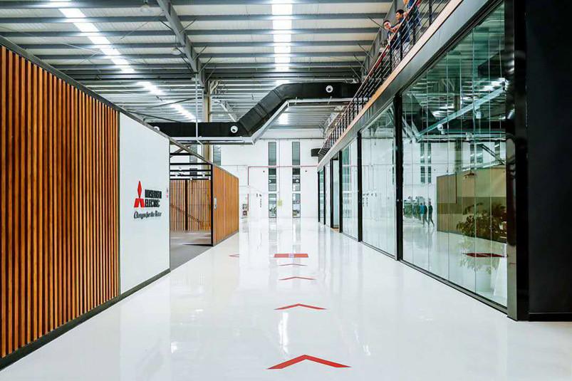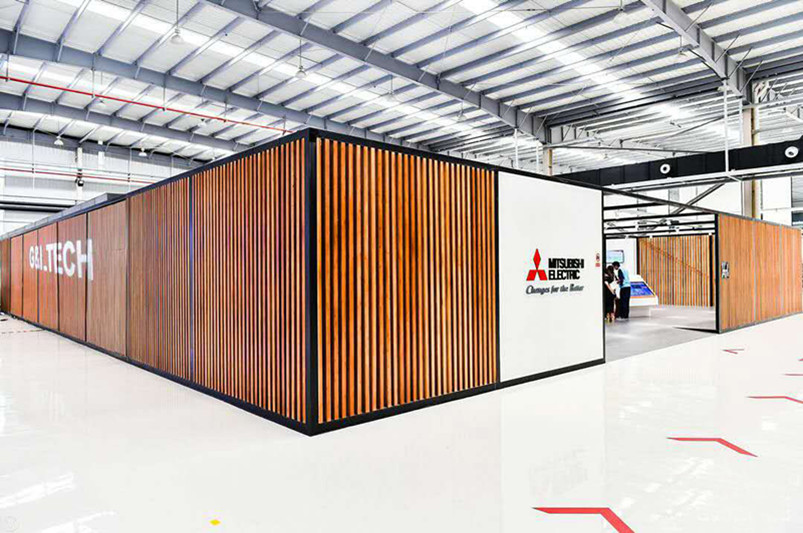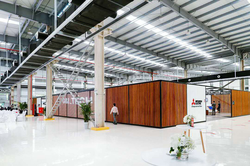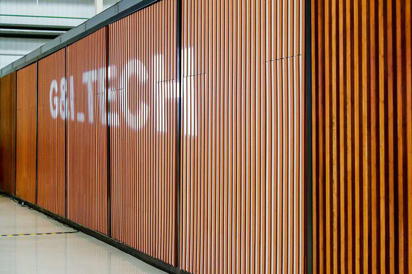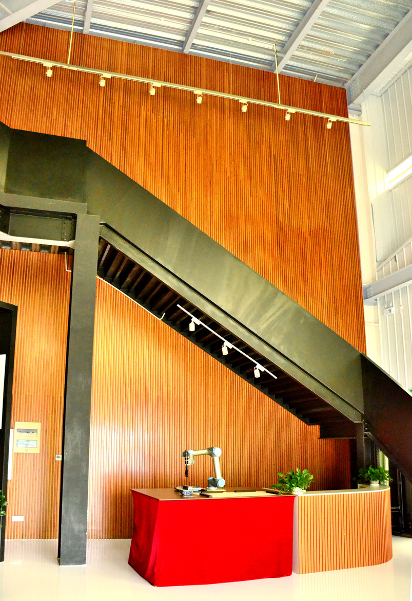 菱創(chuàng)智能是一家集設(shè)計(jì)、研發(fā)、生產(chǎn)制造、銷售和服務(wù)為一體的創(chuàng)新驅(qū)動(dòng)型企業(yè)。其辦公區(qū)的裝飾采用桃花江的室內(nèi)裝飾竹材。工業(yè)化的現(xiàn)代廠房與清新脫俗的傳統(tǒng)竹材形成強(qiáng)烈對比,為端莊嚴(yán)肅的工業(yè)廠房增添了一絲柔美與和諧。竹格柵的設(shè)計(jì)顯得整個(gè)空間通透又有層次感,既不失現(xiàn)代工業(yè)的科技感,又保留傳統(tǒng)文化的美感。