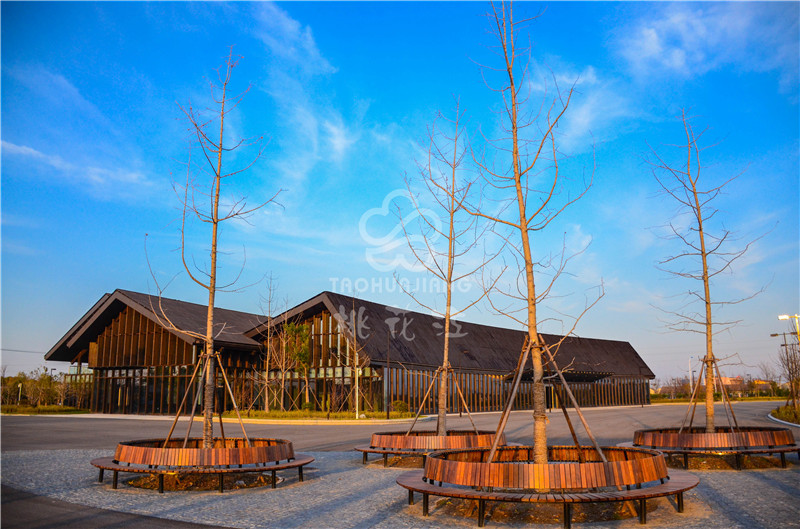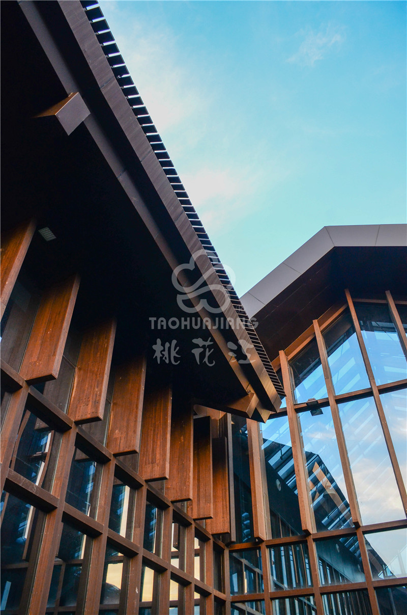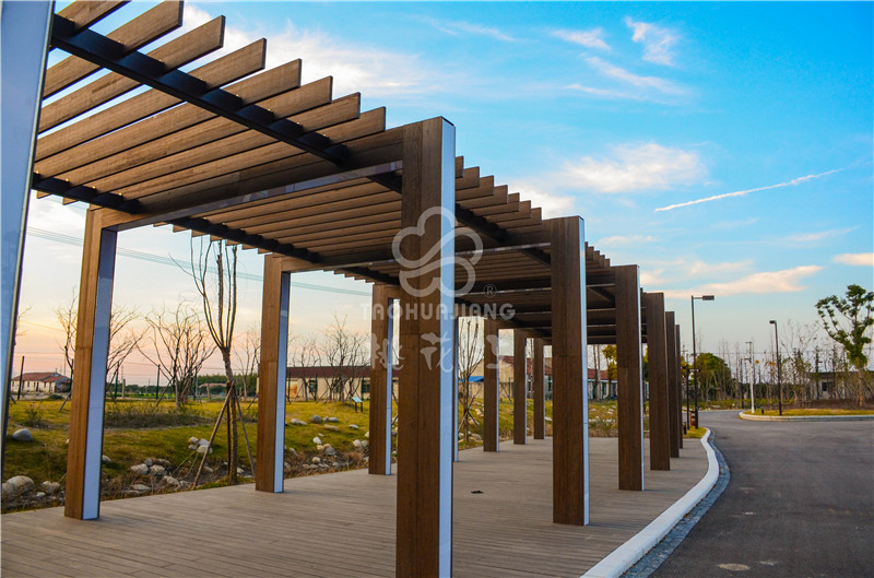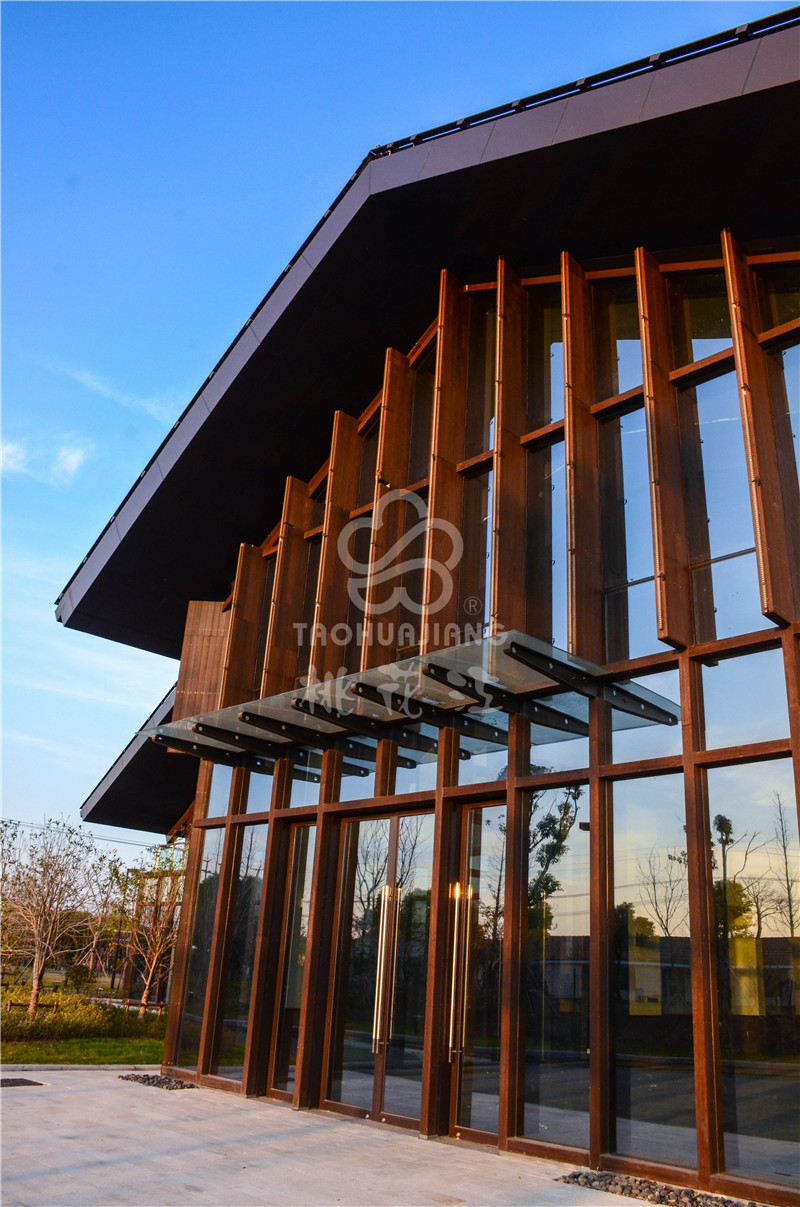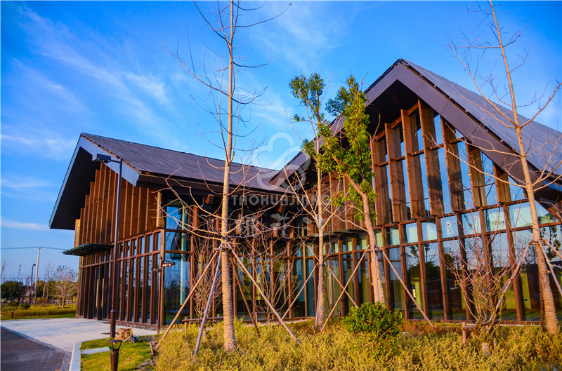 海門農(nóng)副產(chǎn)品會展中心位于江蘇南通海門市開發(fā)區(qū)上海路、黃浦江路交叉口西側(cè),該展銷中心是海門市最大的專業(yè)農(nóng)產(chǎn)品展銷中心。該會展中心的立面裝飾墻板、景觀地板與戶外廊架全部采用湖南桃花江竹材科技生產(chǎn)的高炭防腐戶外竹材。