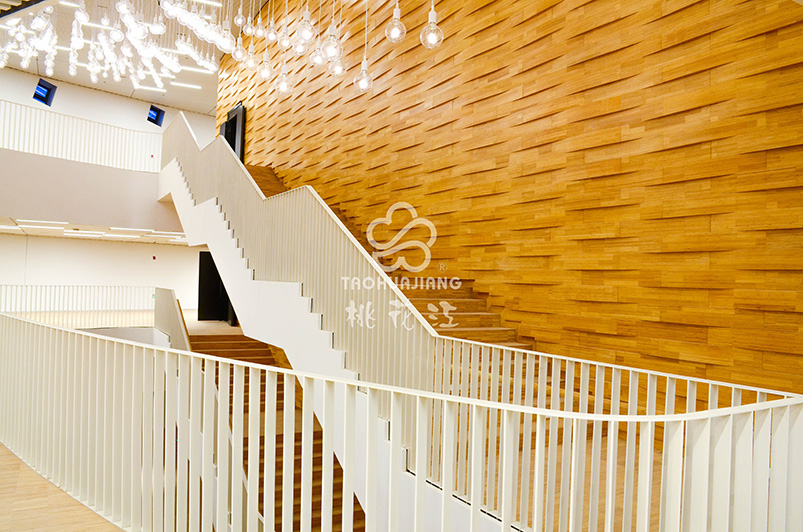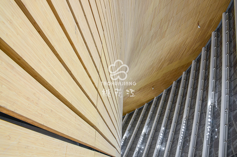 福州海峽文化藝術(shù)中心是由芬蘭設(shè)計大師佩卡·薩米寧Pekka Salminen親自操刀設(shè)計,該項目大量使用桃花江竹集成材進行室內(nèi)裝飾,是竹材應用于大型文化場館的又一經(jīng)典案例。 佩卡·薩米寧是全球?qū)ι瞄L使用竹材裝飾的設(shè)計大師之一,他認為使用竹材是一種自然的選擇,竹材在美學以及生態(tài)上的優(yōu)勢是其它材料無法比擬的,而且竹材是真正的中國傳統(tǒng)材料。 福州海峽文化藝術(shù)中心總建筑面積15萬平方米,工程總造價超過國家大劇院的海峽文化藝術(shù)中心,整個建筑群造型似一朵潔白的茉莉花,5個花瓣式場館每個都是一個功能廳,包含多功能戲劇廳、歌劇院、音樂廳、藝術(shù)博物館、影視中心等一系列文化設(shè)施,堪稱福州的文化新地標,它宛如一顆璀璨的文化明珠,鑲嵌在福州新區(qū)三江口片區(qū)。