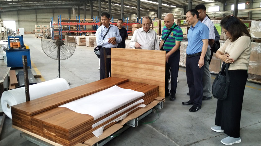 索枚先生一行在桃花江竹材科技的生產(chǎn)車(chē)間,詳細(xì)了解公司重組竹材的生產(chǎn)、銷(xiāo)售情況,得知我司的高炭防腐竹材的高科技和高性能后,索枚感嘆到“沒(méi)想到竹業(yè)在你們這里做得非常好,也讓我們學(xué)到了很多東西;我們將學(xué)到的帶到泰國(guó)去發(fā)展,推動(dòng)我們國(guó)家竹產(chǎn)業(yè)的發(fā)展。”